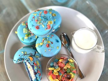 A sweet meringue based delicate shell made with almond flour, egg whites, confectionary sugar, Fillings may contain other ingredients depending on flavor. Flavors vary in store- weekly specials.