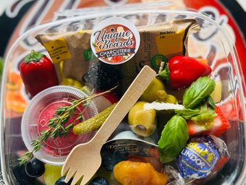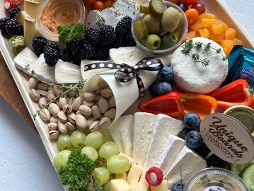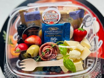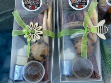 2 cured meats; 2 artisan cheese; berries or pistachios/dried fruit; chocolate, and specialty crackers (Vegan available) All the things you love! Can be Customized Upcharge $1 EACH