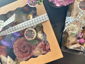 Variety Box $48 Cured meats, artisan cheeses & charcuterie accompaniments; honey, marmalade spread, chocolate and specialty crackers.